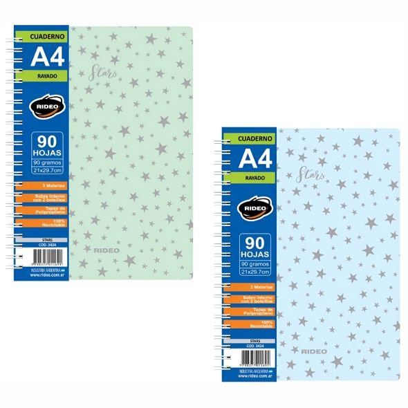 Cuaderno rideo a4 stars 90hjs rayado 3424